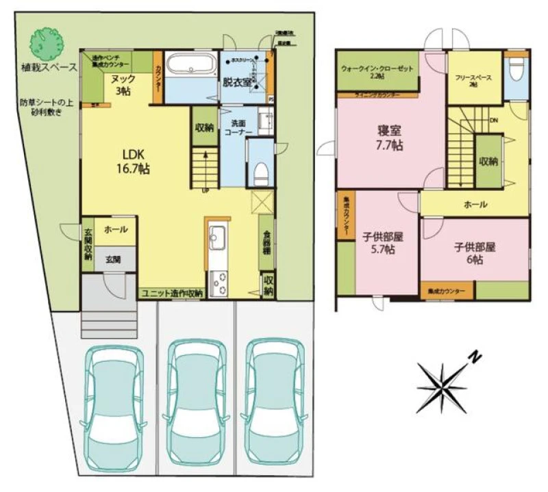 | 設備 | 上水道、下水道、側溝、システムキッチン、IHクッキングヒーター、トイレ2箇所、ウォークインクローゼット、駐車3台以上可 | ||