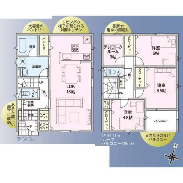 | 設備 | 都市ガス、電気、上水道、下水道、システムキッチン、カウンターキッチン、浄水器、給湯、トイレ2箇所、温水洗浄便座、シャンプードレッサー、浴室乾燥機、フローリング、複層ガラス、ルーフバルコニー、収納スペース、床下収納、ディンプルキー、モニタ付インターホン、火災警報器等設置済、建設住宅性能評価取得(予定含む) | ||